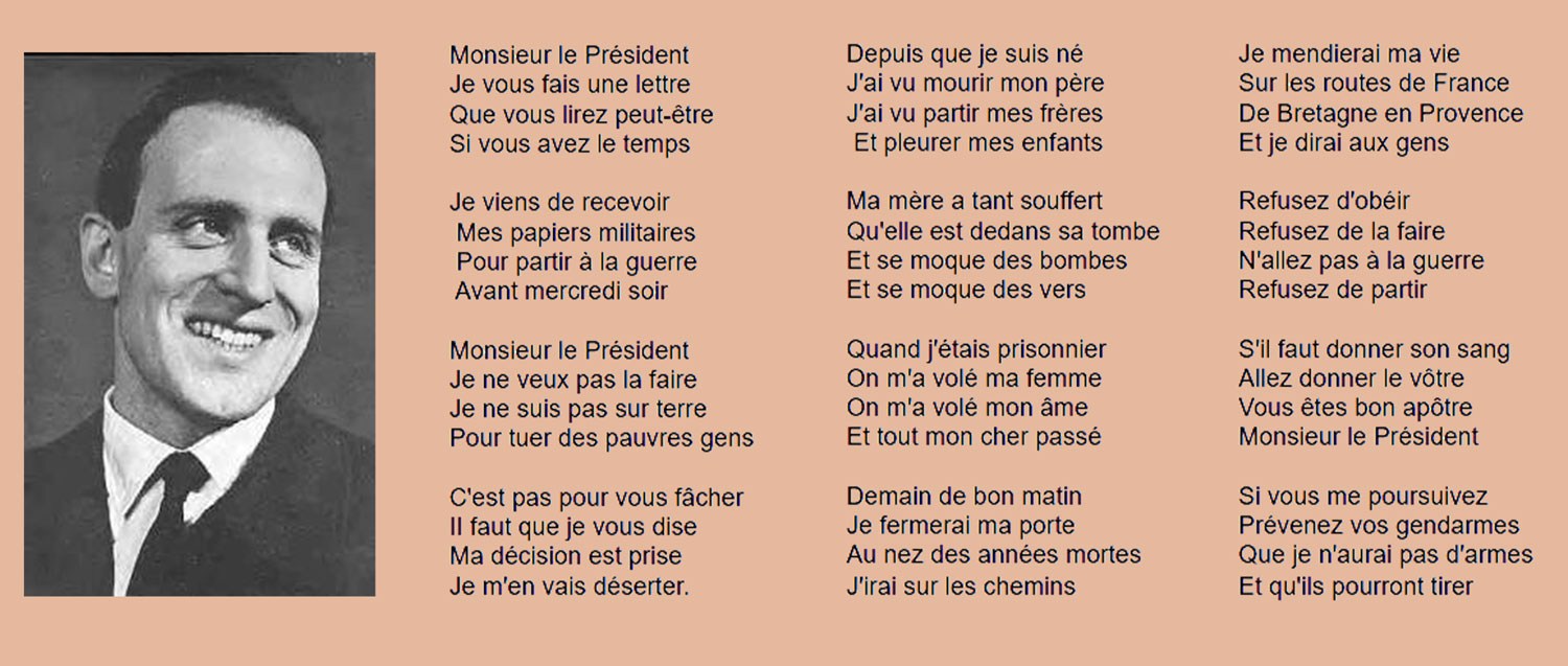 La version de Mouloudji, carrément affadie, date de 1955. La guerre d’Algérie fait rage. Mouloudji justifie ainsi sa version: